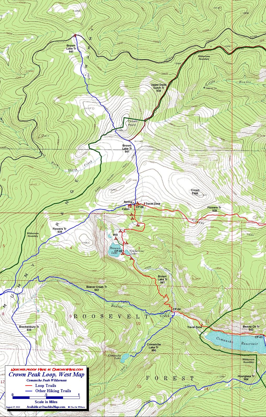 Background: Found in the Roosevelt National Forest, the 66,791 acres Comanche Peak Wilderness boasts over 121 miles of trials and is administered by the Canyon Lakes Ranger District. It is bounded by Rocky Mountain National Park to the south and the Cache la Poudre River to the west and north. The east side has an irregular shape deformed by recesses caused by active forest roads (Crown Point Road to the north and Pinegree Park to the south) and a salient that includes Crown Point, Little Beaver Creek and Fish Creek. The prominent peaks are part of the north-south trending Mummy Range that begins in the park, crosses into the wilderness near Comanche Peak and tapers to the sub alpine elevations north of Crown Point.