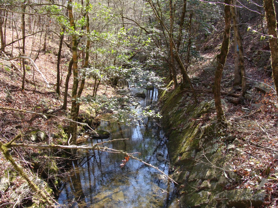 Tom's Narrative: My hike began on late Thursday morning on March 24, 2011 at the Brushy Creek Day Use Area off Hwy 246. The trail begins by crossing a long bridge over a ravine. This trail has lots of bridges spanning some tough areas. As soon as you cross the bridge you will start climbing. You will soon notice that the trail is over blazed. The reason for the excess blazing is that after the trail had been flagged the trail was opened but it didn’t have a tread. Now the bridges are all finished and there is trail tread all the way. About a half mile later is the next bridge which crosses over a nice little stream.