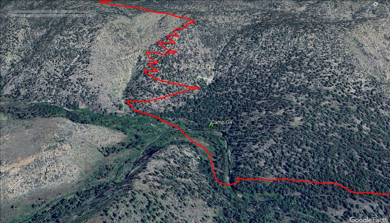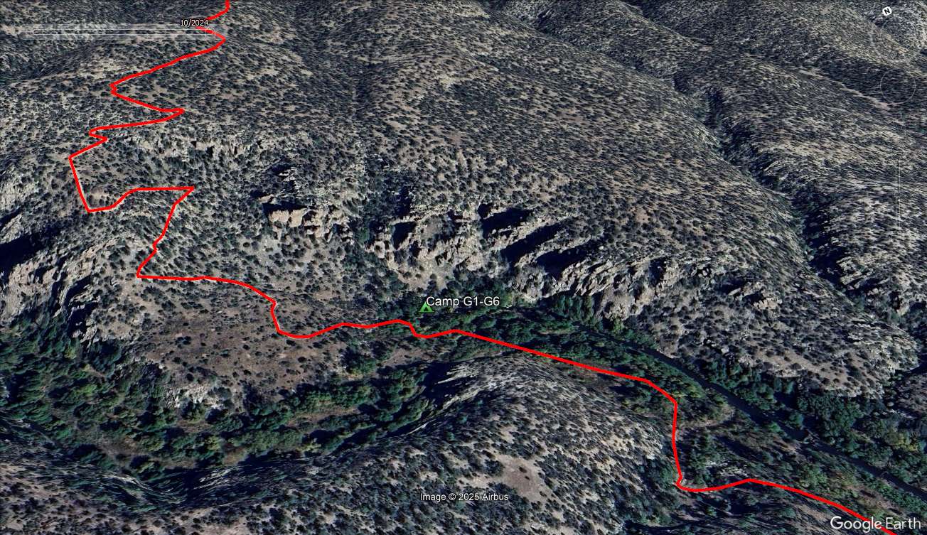 We left camp and backtracked to the Chicken Coop junction, but stayed on the Trotter until we got to the south edge of the mesa 7 miles later. Another mile dropping 1,000 feet on switchbacks and we reached our campsite on White Creek.