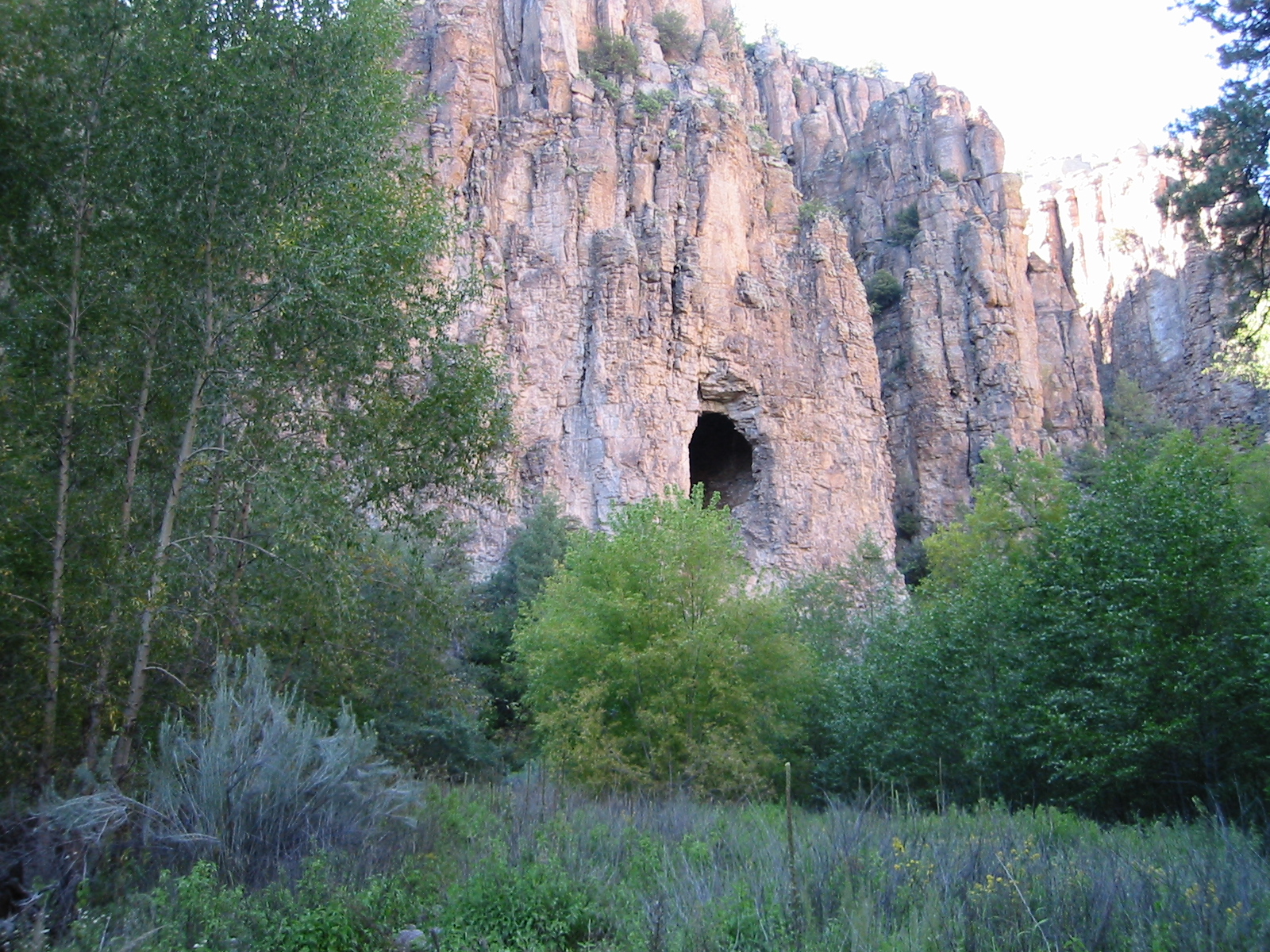 The hike starts at the Willow Creek Trailhead in the Willow Creek Campground. The campground is 17 miles (but over an hour) west of Mogollon NM on Highway 159 (Bursum Rd). See this image. The hike starts with a crossing of Willow Creek and Turkey Creek. After that you are out of the campground and starting a 350 foot climb up McKenzie Trail (#151) to Iron Creek Lake. Turn east at the junction of the Iron Creek Mesa Trail (#171, 1.3 miles) and head across Iron Creek Mesa. The mesa is underlain by mid-Tertiary Datil-Mogollon volcanics ranging from rhyolites to andesites. At 6.8 miles begin your 600 foot decent down to the meadow next to the Middle Fork of the Gila River (7.4 miles).