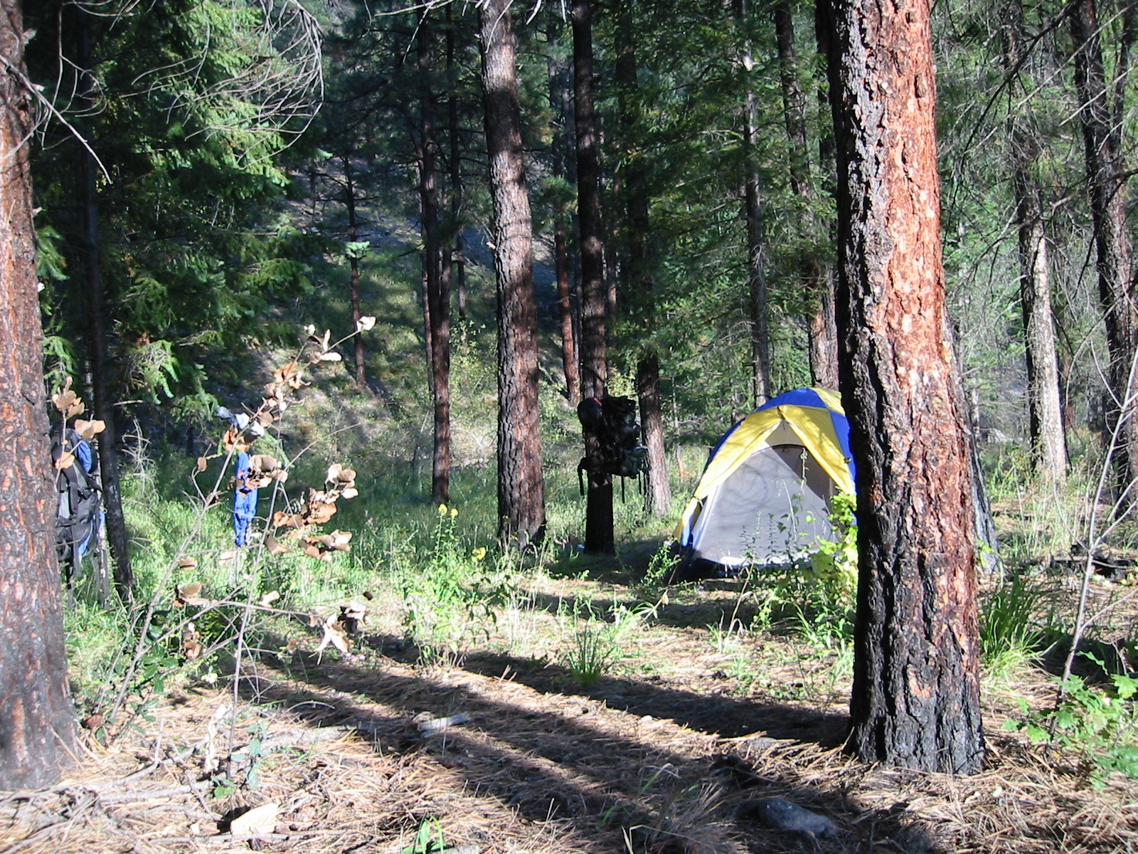 In another 2.2 mile, we reached the Meadows Trail #53 with a vista of the river below. The Meadows Trail took us to the Meadows (duh), down 900 feet of switchbacks. The Meadow had a great campsite with a fire ring and plenty of furniture.