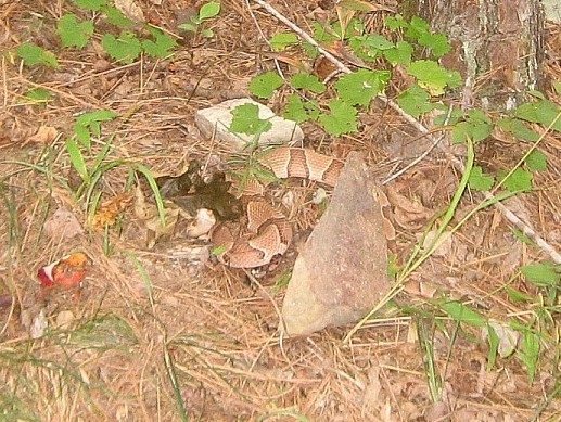 On our trip in October 2007, we saw 4 white tail deer, many big squirrels getting fat on all the hickory nuts and acorns, a copperhead and a black rat snake. We didn’t see any black bear, but there was plenty of scat on the trail.