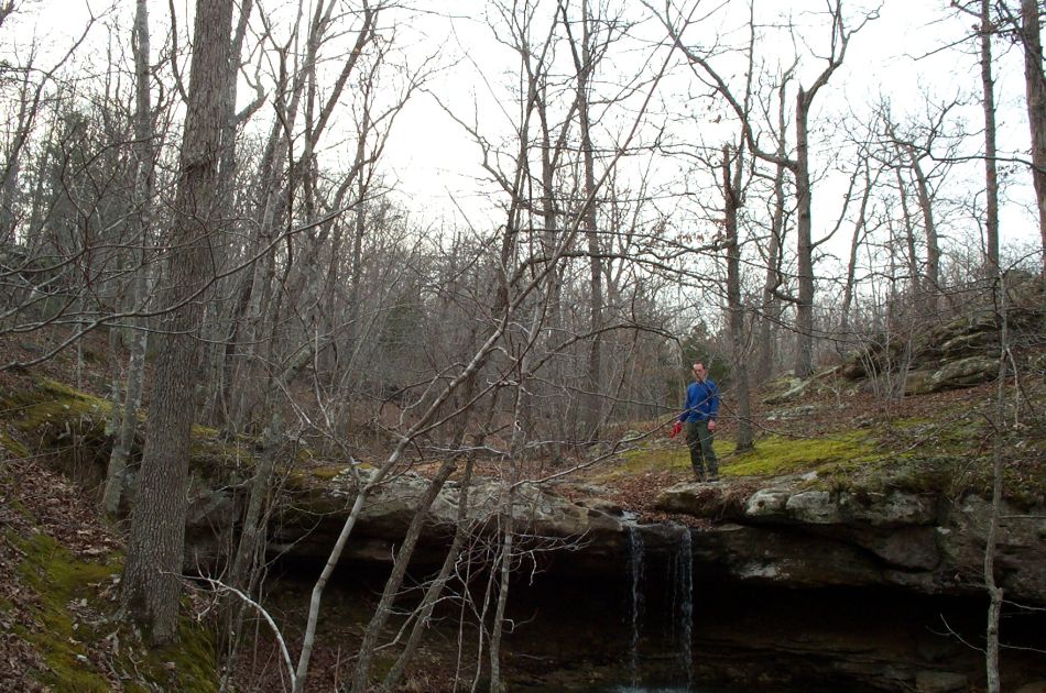- Waypoint 14, 15.5 miles (N37.53313 W092.11339). Cross small creek. Small water fall and pool up stream from trail crossing.