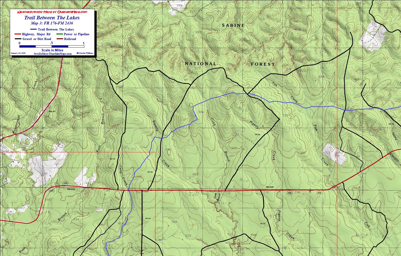 Info: USGS 7.5 minute Quadrangles: Pineland North, Pineland South, Hemphill and Negreet SW. Sabine National Forest, 5050 Hwy 21 East, Hemphill TX 75948, Telephone: (409) 625-1940.