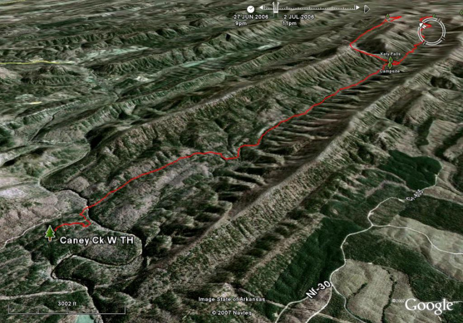 Directions to West Caney Creek Trailhead: Take State Hwy 375 southeast from Mena AR to Shady. Follow County 81 south for 5 mile (this is the only sign for the turnoff). Turn left at sign for trailhead access.