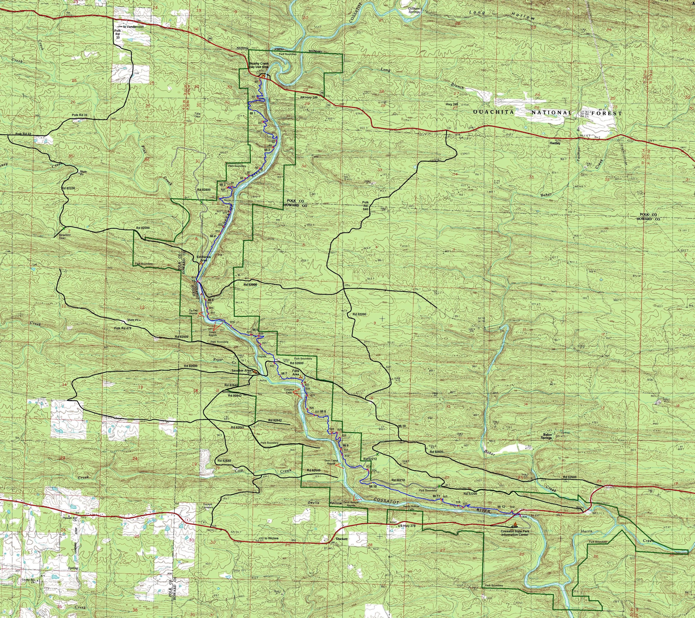 Free downloadable topo maps of the Cossatot Trail.