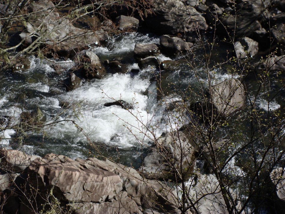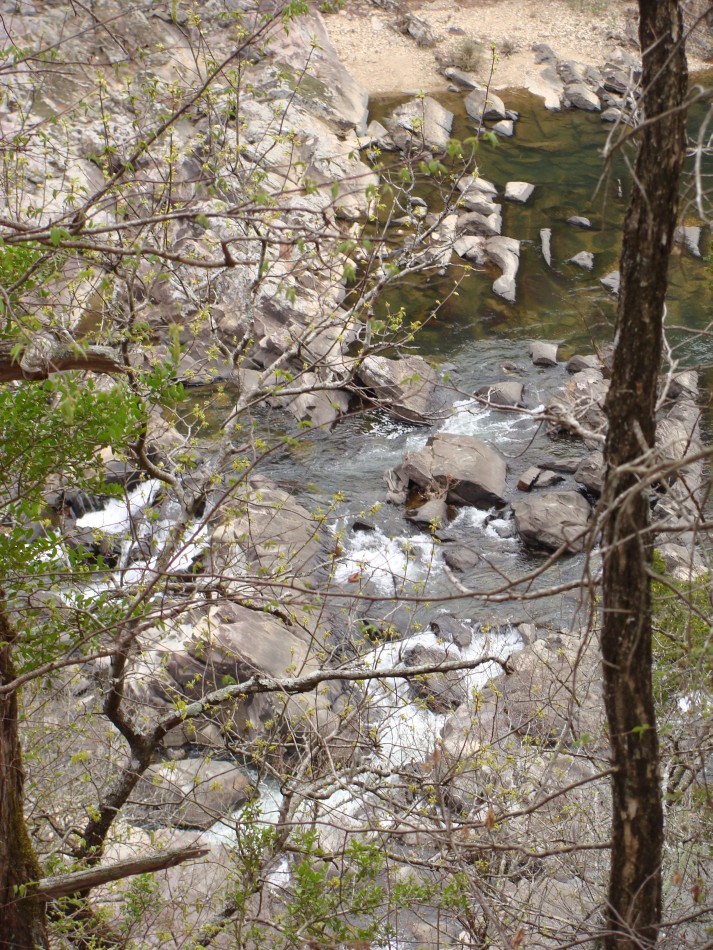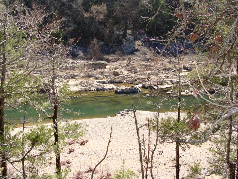 Leaving the Ed Banks area the trail starts to climb and you go thru lots of cedar. Below are lots of good of views of the Cossatot River. The trail continues high above the stream through lots of rock and plenty of redbuds. The river, even when low, has lots of interesting features that provide a hint of what attracts the whitewater enthusiasts.