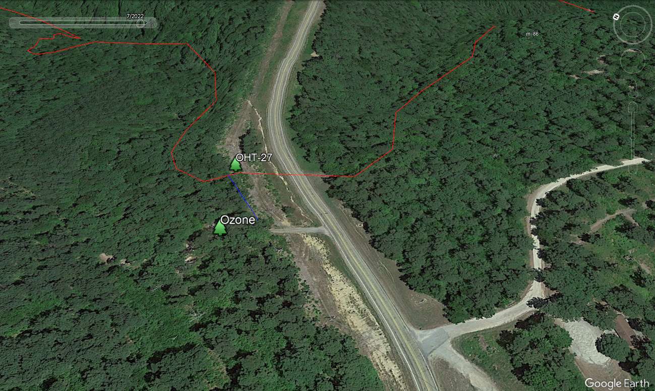 OHT-18 is where the trail intersects county road 5099 (OHT mile 58, trip mile 27.6). A note about the road numbers. They are a mess. There are forest road designations and county road designations and the numbers have changed in the last several years. I have used Google Maps, Mapquest, Ernst's book, sign posts and whatever but they don't all tell the same story. Sorry!